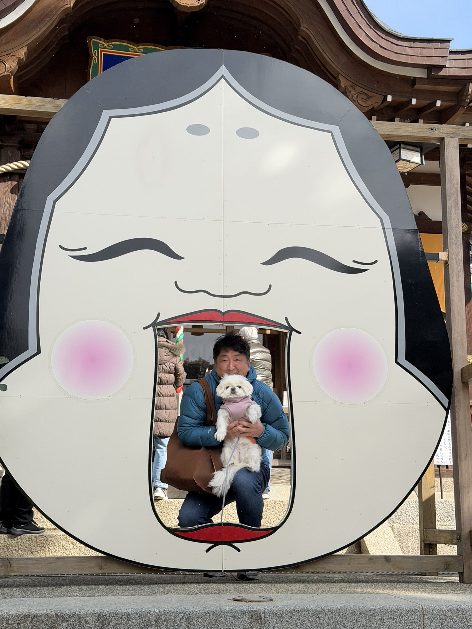 先日、雪の降る寒い日に妻と愛犬と高尾神社の「お多福通り抜け」に行ってきました。